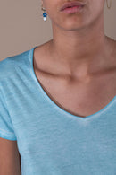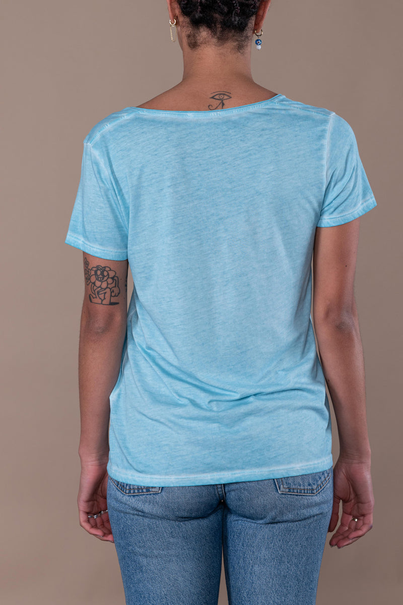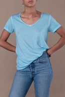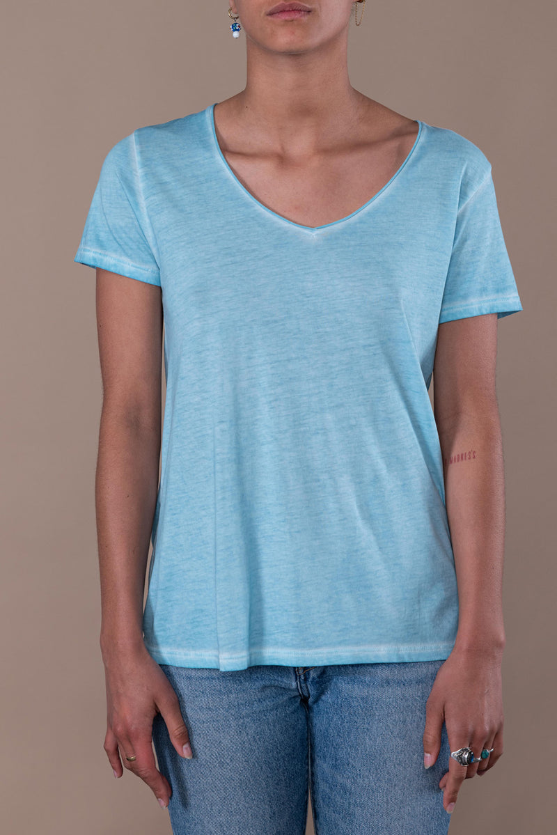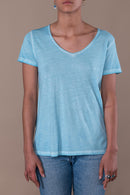 T-shirt en jersey délavé à col V bords francs