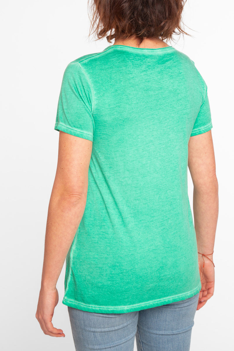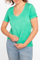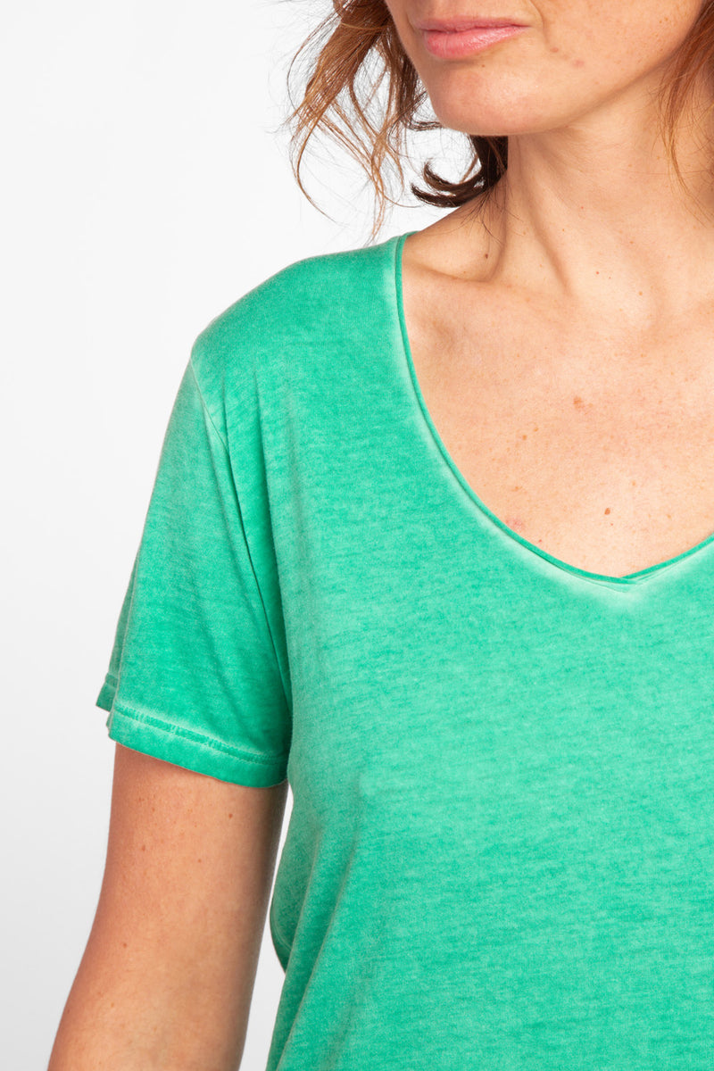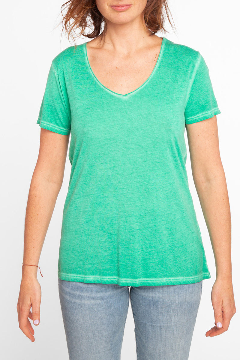 T-shirt en jersey délavé à col V bords francs