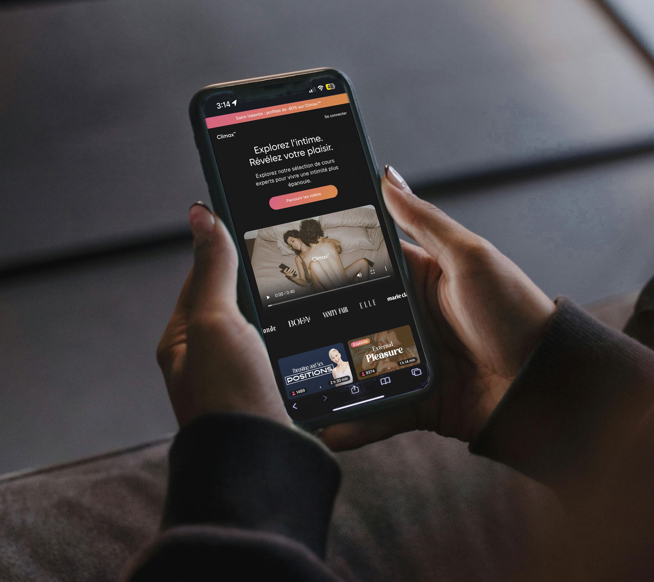 Pas toujours besoin de sortir pour marquer le coup. À la Saint-Valentin, on peut aussi choisir d’explorer ce qui se joue entre nous. Sur Climax, une plateforme de masterclass 100% vidéos, on apprend, on décrypte et on échange autour du désir et de l’intimité, accompagné par des experts de santé.
