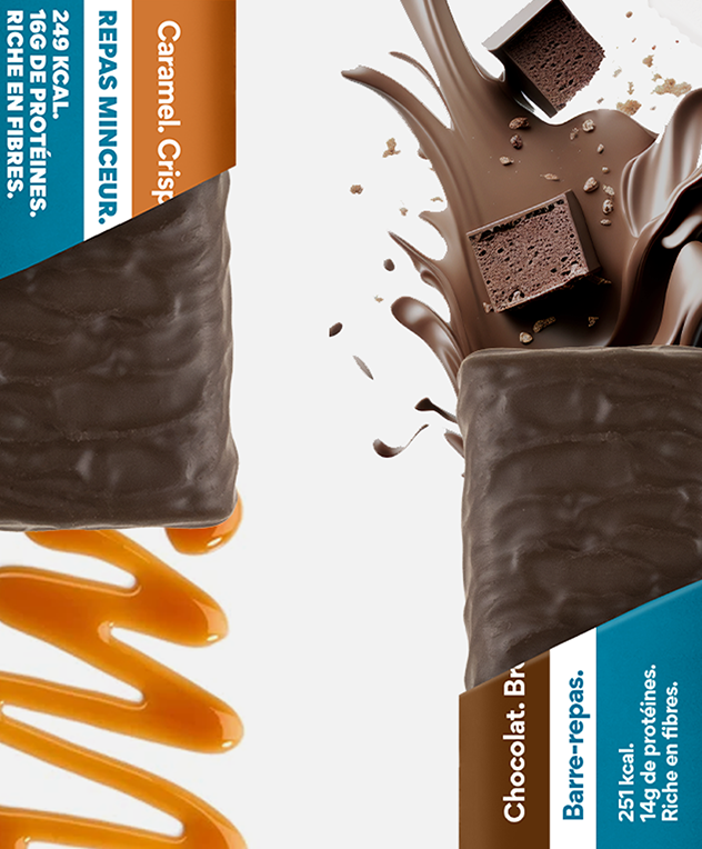 Des barres-repas gourmandes et légères spécialement développées pour la perte de poids. À prendre à la place d'un repas, 1 à 2 fois par jour.