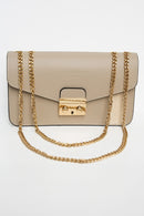 Composition : Sac à main avec ouverture principale à rabais, fermeture à loquet, 1 bandoulière chaîne, et intérieur avec 1 poche à zip.